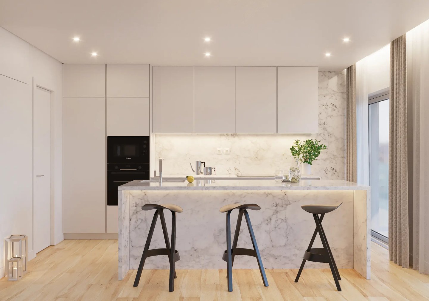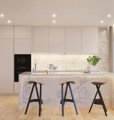 A cozinha é hoje um símbolo de status e modernidade. Focamos na harmonia entre materiais nobres e a praticidade do quotidiano. Detalhes estratégicos, da organização visual à iluminação técnica, garantem que este espaço seja percebido como um investimento de alta gama, aliando a estética à máxima eficiência.